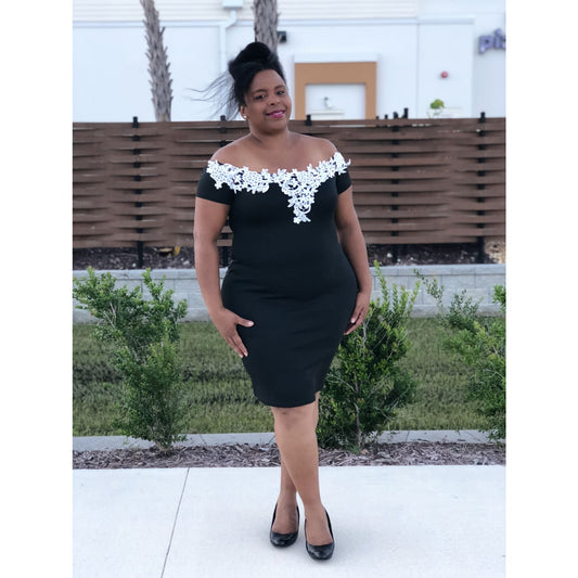 Lace Crochet Off Shoulder Black Plus Size Pencil Dress 14W