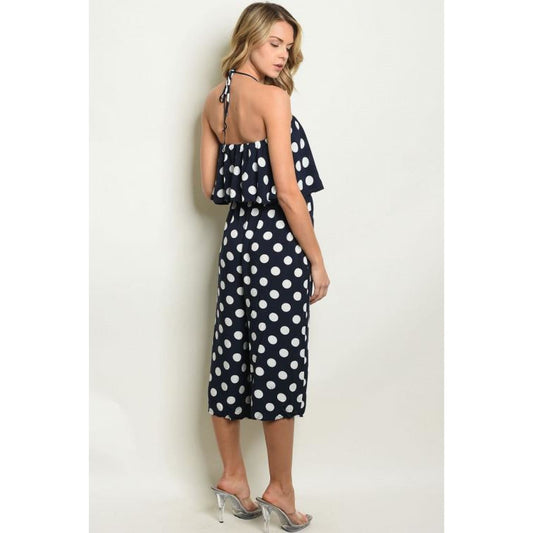 Navy Halter Polka Dot Jumpsuit SMALL