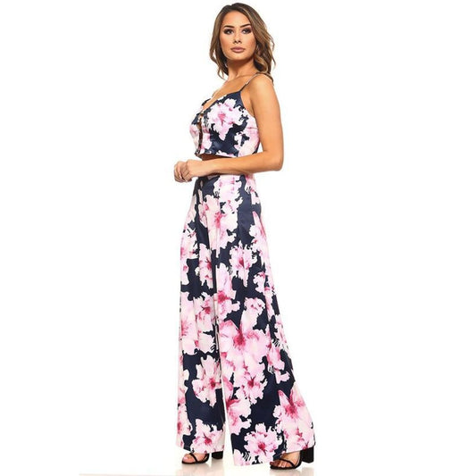 Navy Floral Crop Top and Pants Set