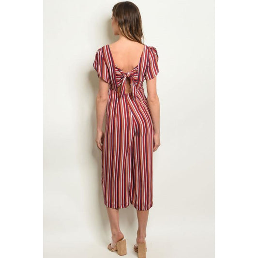 Wine Stripes with Back Bow Jumpsuit