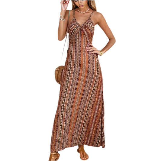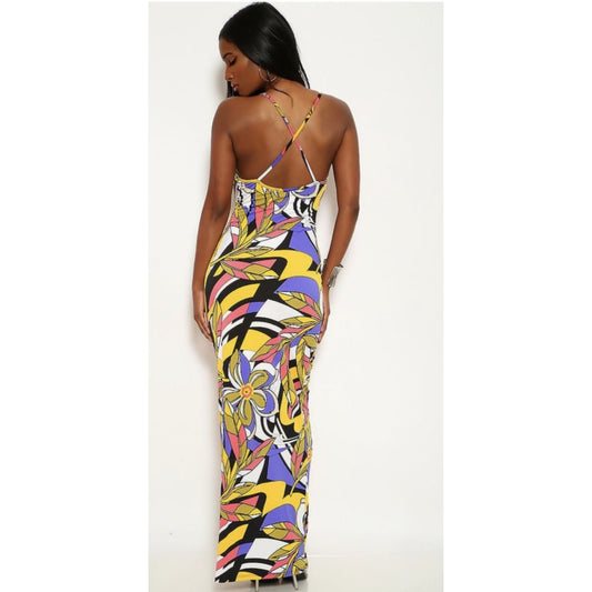 Chic Summer Boho Floral Maxi Dress in Mustard
